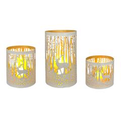 Windlicht Forest 3er Set aus Metall Weiss gold