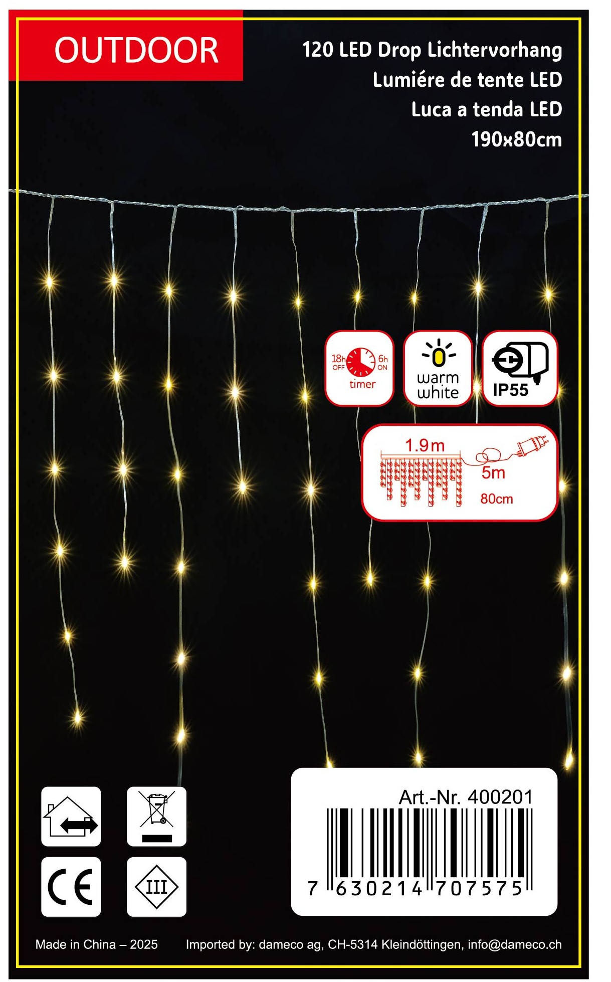 LED Lichtervorhang Outdoor dew drop "Icicle" mit total 120 LED