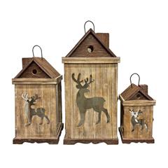 Laterne 3er Set Haus aus Holz mit Hirsch Design Farbe: Braun