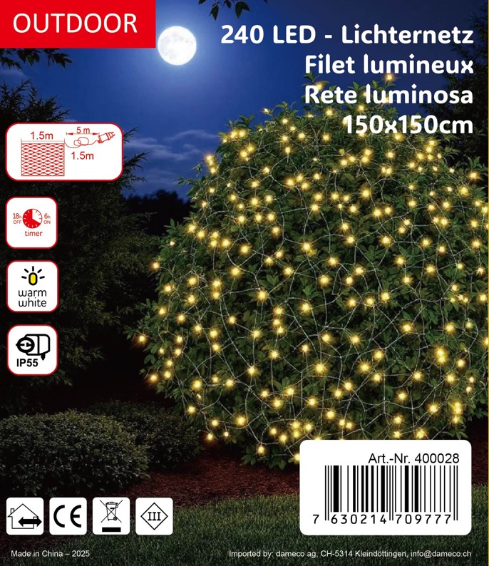 LED Outdoor Lichternetz 240 LED warm weisses Licht 150x150cm Kabelfarbe: Grün