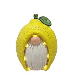 LED Solar Lemon Wichtel in Gelb mit grünem Blatt mit 7 LEDs