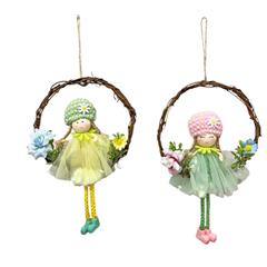 Oster Engel sitzend auf Kranz als Hänger 2-assortiert Grösse:3x15x23cm