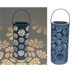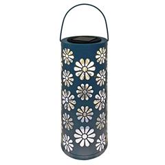 LED Solar Laterne mit 1 LED aus Metall in Blau Design Blumen D:11cm H:25.5cm