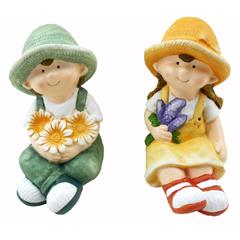 Figuren Kinder sitzend 2er Assortierung Grösse 9.5x14x16.5cm