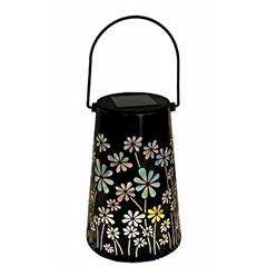 LED Solar Laterne aus Metall mit 1 LED Design Blumen D:11cm H:17.5cm