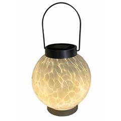 LED Solar Laterne aus Glas rund mit 1 LED in Weiss geflecktes Design D14.5cm H17.5cm