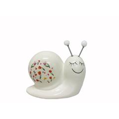 Deko Schnecke aus Keramik weiss mit Blumenmuster