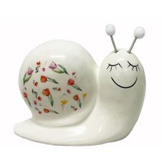 Deko Schnecke aus Keramik weiss mit Blumenmuster