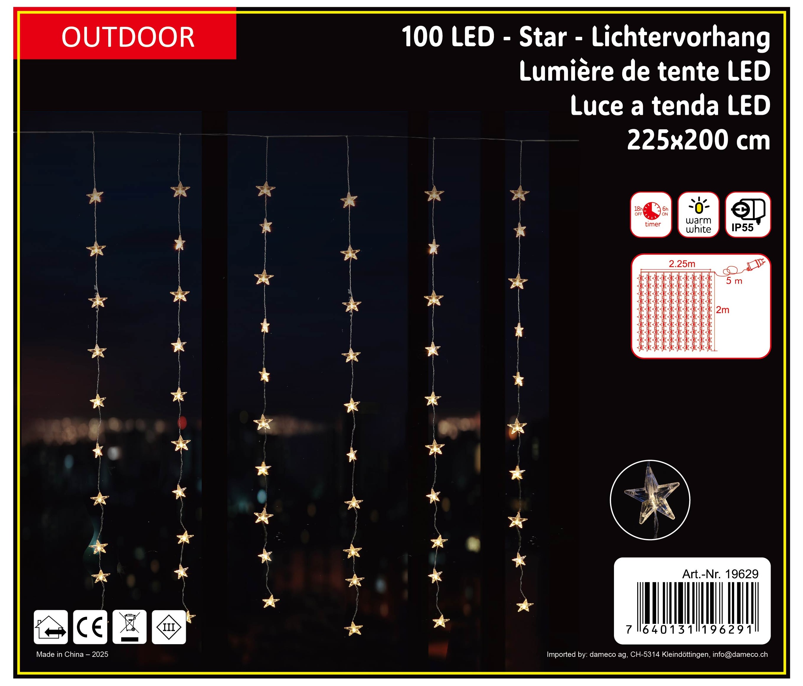 LED Lichtervorhang Outdoor mit Sternen 100 LED B: 225cm H: 200cm Warm weisses Licht
