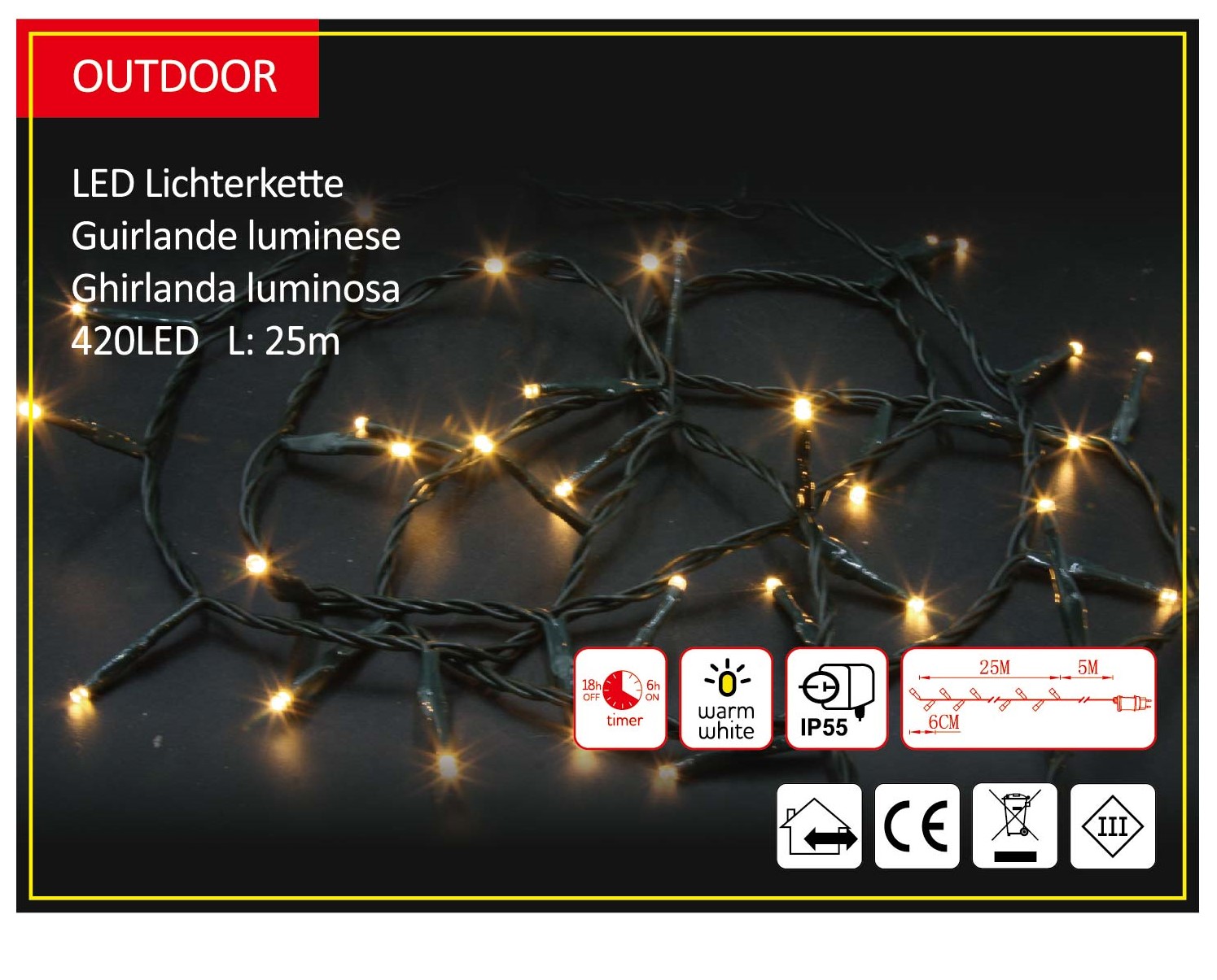 LED Outdoor Lichterkette 420 LED Warm weisses Licht L: 25m - Kabelfarbe: Grün