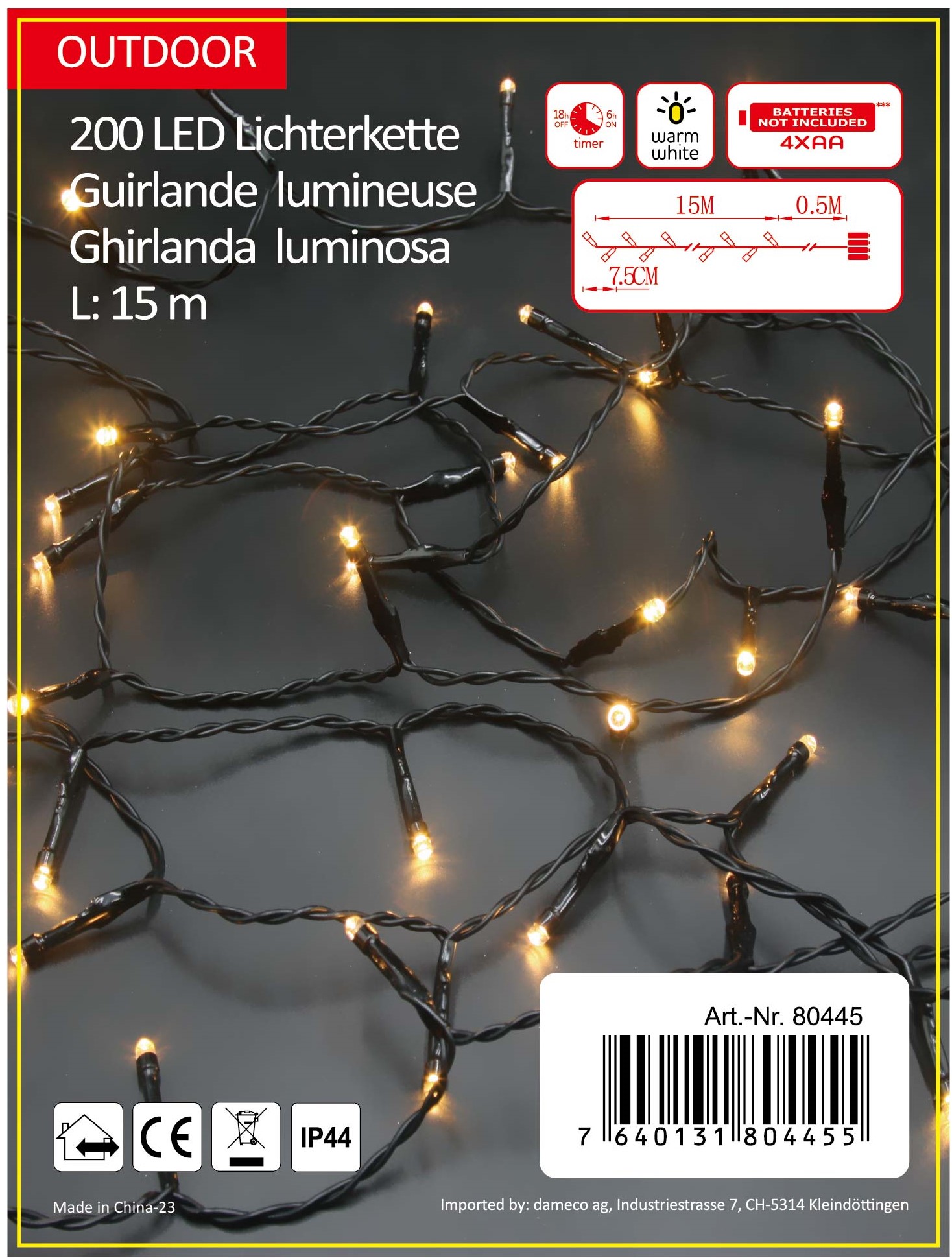 LED Outdoor Lichterkette 200 LED warm weisses Licht Länge 15m