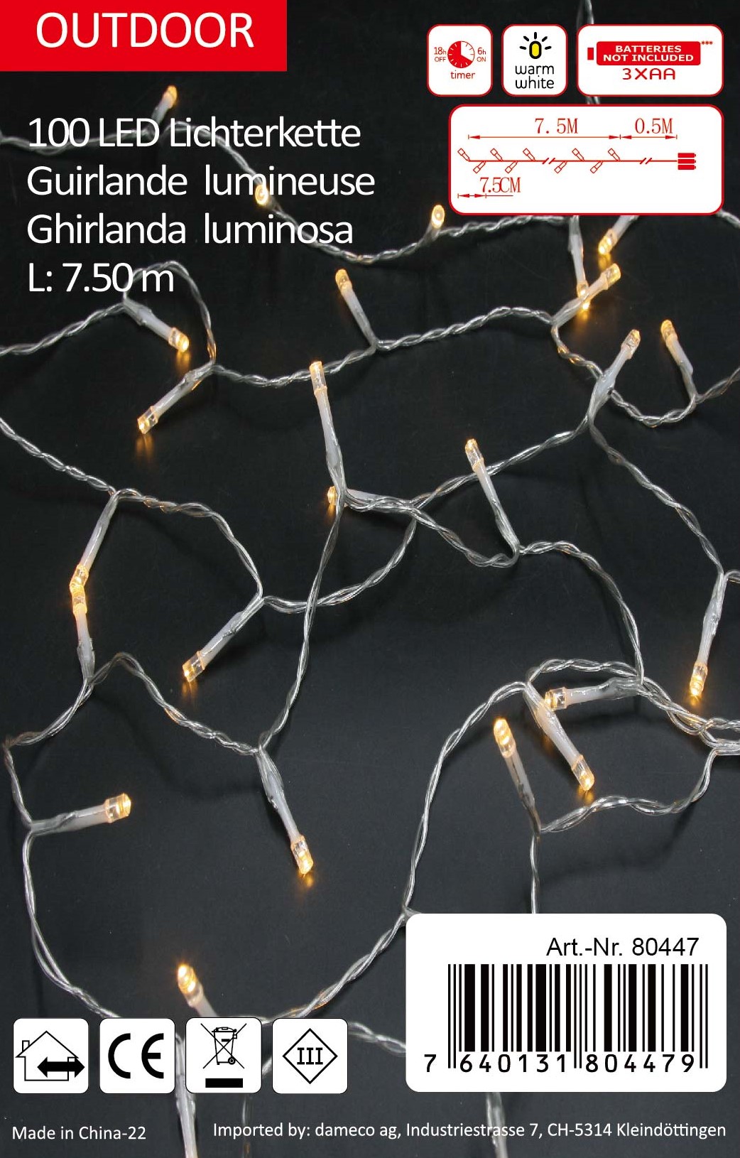 LED Outdoor Lichterkette 100 LED warm weisses Licht Länge 7.5m